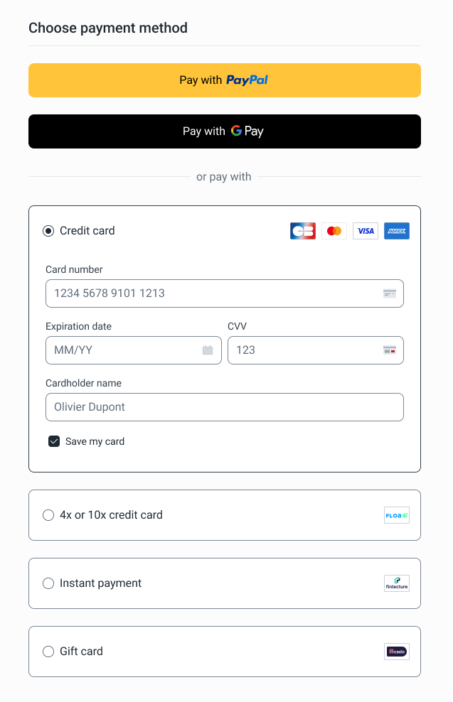 IntegrateIntegration modesHosted PageOn this pageHosted PageOverview The hosted page is a secure and pre-built interface served by Purse. It allows merchants to outsource the checkout experience. PCI-DSS complianceThe Hosted Page mode complies with all security requirements to provide a PCI-DSS certified page. FeatureDescriptionBranding customizationLogo Primary button colorCart SummaryDisplays a detailed order summary extracted from "order.shipments" in the "ClientSession".RedirectionAutomatic redirect to "redirection_url” after success or failure. Abort option available via a dedicated API. LocalizationPage is auto-translated using the "locale" in the session or browser language as fallback. Preview Integration Steps To generate a hosted payment page, simply create a Client Session using the client-session endpoint with the following payload: { "entity_id": "your-entity-id", "amount": 12000, "currency": "EUR", "integration_mode": "HOSTED_PAGE" ...} The links.hosted_page field in the API response will contain the hosted page URL in the following format: https://pay.purse-{{env}}.com/entities/{{entity-id}}/sessions/{{client-session-id}} Abort a Payment If the customer decides to cancel the payment, the merchant can abort the session by using the following endpoint: Abort Client Session Endpoint: /payment/v2/client-sessions/{id}/abort Method: POST Client Session Abort The user will be redirected (HTTP 303) to the redirection_urlconfigured Payload example: { "session_id": "your-session-id", "status": "AbortedByCustomer"} FAQ How does localization work?The hosted page supports real-time localization. The page is auto-translated using the locale in the session or browser language as fallback. What happens if the session is invalid?Session validation is done server-side: invalid sessions are redirected to the redirection_url. How is branding configured?All branding configurations (logo and colors) are pre-configured and based on the merchant's entity_id.